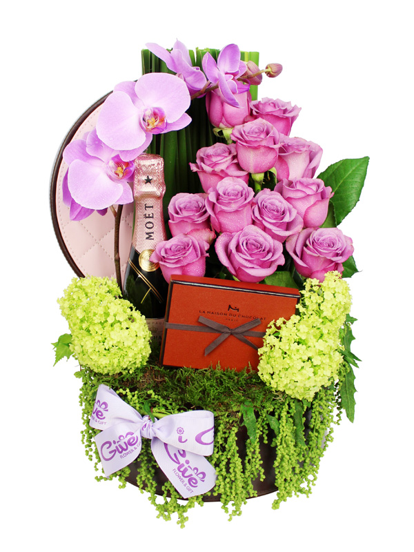 La Maison du Chocolat - Les Attentions Chocolate Gift Box (45g), Purple Rose, Pink Butterfly Orchid, Green Ball, Esprenium, Greens