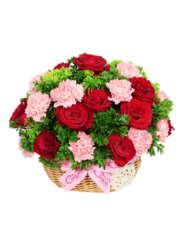 Red Rose, Pink Carnation, Greens