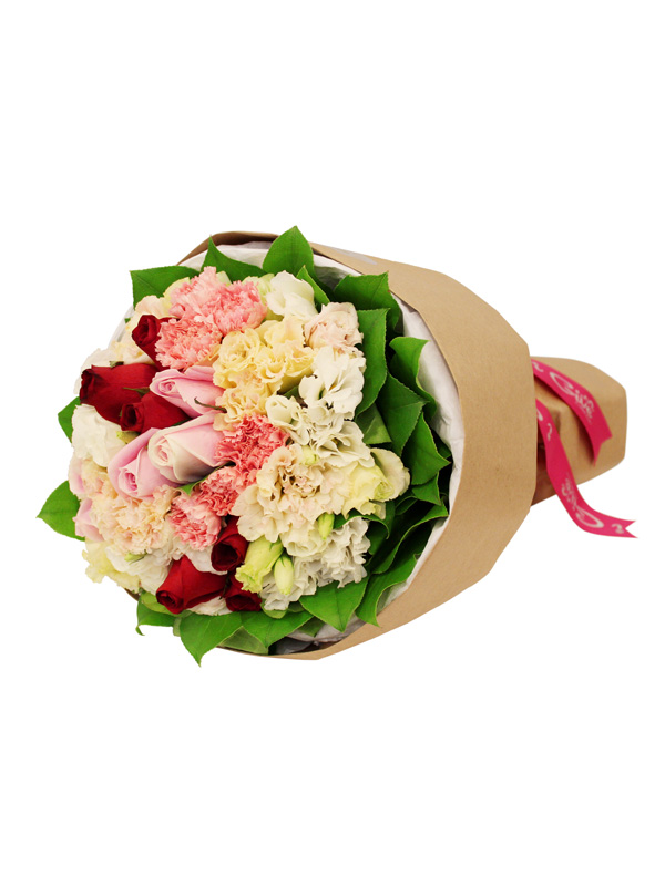 Red Rose, Pink Rose, Pink Carnation, Lisianthus, Greens